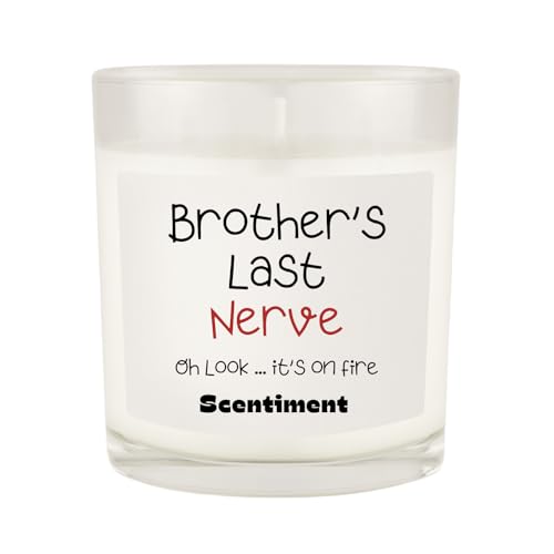 Scentiment - شمعة "لاست نيرف" من سينتيمنت - هدية مضحكة للام والاب والرئيس والمعلم والعائلة | رائحة البلوط الماهوجني واللافندر المتجمد | مزيج شمع العسل وجوز الهند | مصبوبة يدويًا | شمعة هدية ساخرة (براذر)