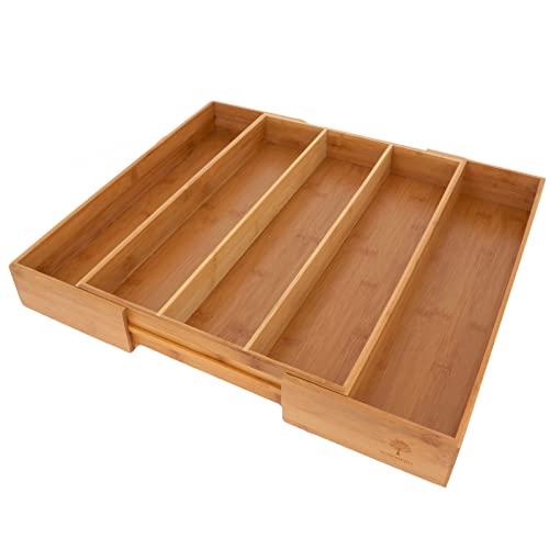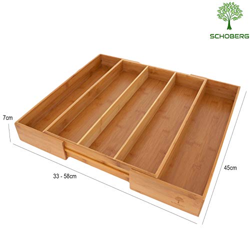 SCHOBERG - صينية لادوات المائدة مصنوعة من الخشب قابلة للتمدد لتنظيم ادراج المطبخ من سكوبيرج، مقاس 33-58×45×7 سم