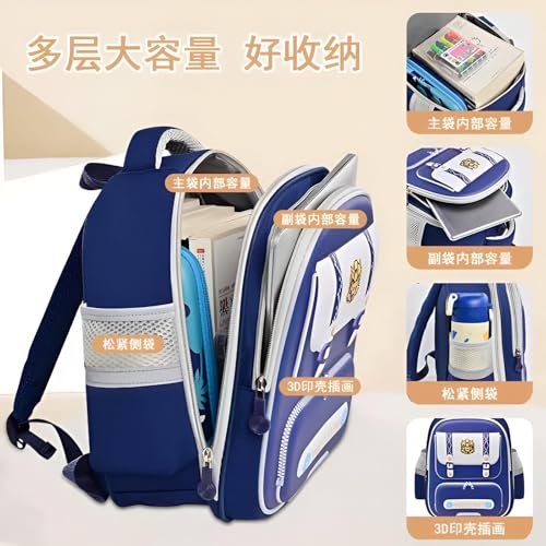 Generic - شنطة ظهر مدرسية للاطفال - شنطة ظهر متينة بلون كحلي مع حواف بيضاء، جيوب متعددة وشرائط عاكسة لطلاب رياض الاطفال والمدارس الابتدائية والمتوسطة - مريحة وخفيفة الوزن