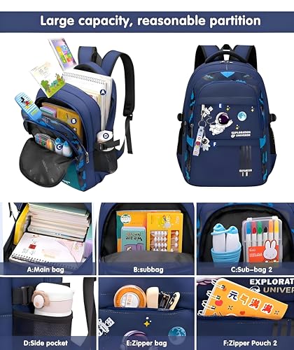 Generic - شنطة مدرسية - شنطة ظهر واسعة ومتينة بطابع الفضاء مصممة لتوفير الراحة والسلامة بالوان متعددة وظهر مبطن للاستخدام اليومي للاطفال في المدرسة