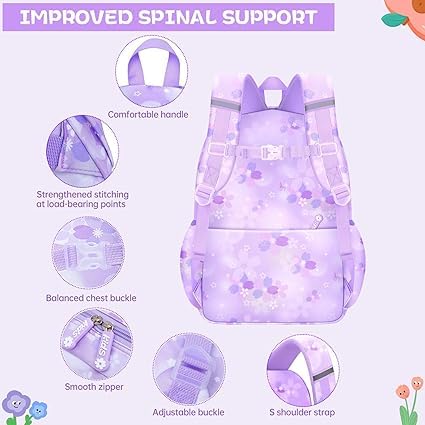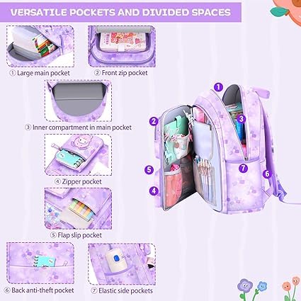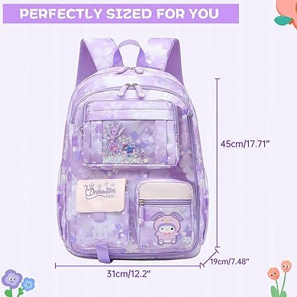 Generic - شنطة ظهر للمدرسة للبنات بسعة كبيرة بتصميم مقاوم للماء، مزودة بجيب للاب توب