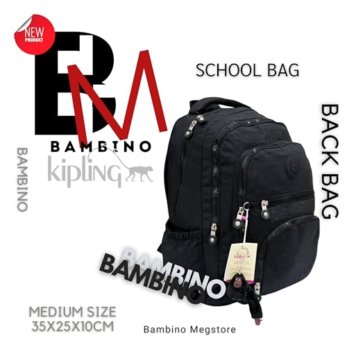 Generic - شنطة ظهر للمدرسة والسفر - شنطة ظهر كيبلين - للجنسين - مقاس 18 انش - اسود