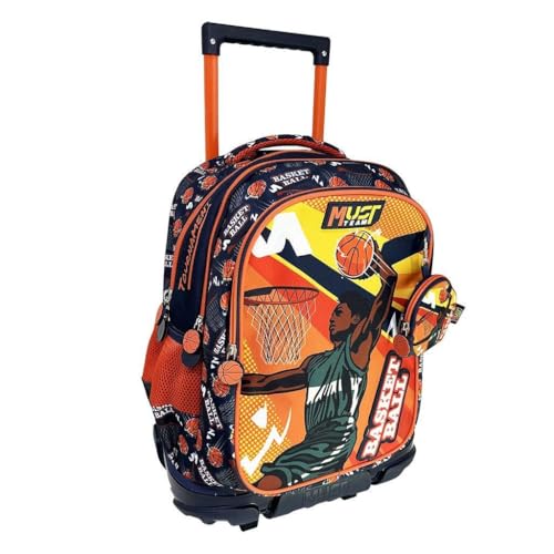 MUST - حقيبة ظهر مدرسية بعجلات لا غنى عنها لبطولة كرة السلة مكونة من 3 حافظات