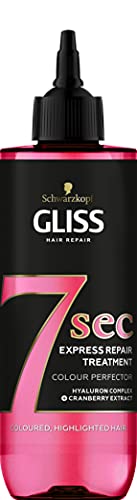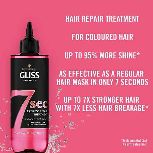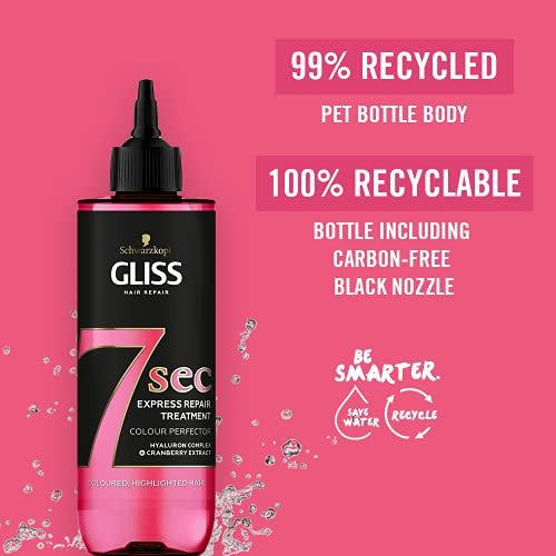 Schwarzkopf - علاج شوارزكوف جليس 7 ثوانٍ لإصلاح الشعر، مُحسّن اللون، قناع شعر فوري للشعر المصبوغ والمُخصل، 200 مل (عبوة من قطعة واحدة)