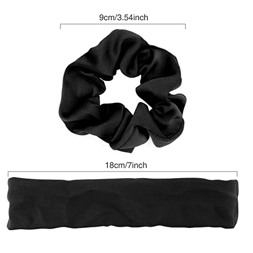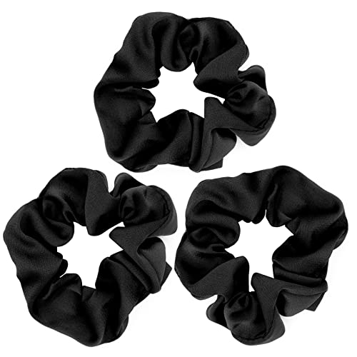 scicent - ربطات شعر حريرية مرنة للنساء لتسريحة ذيل الحصان من سايسينت، مصنوعة من الساتان الناعم مكونة من 3 قطع اكسسوارات شعر عصرية لون (أسود) - 301