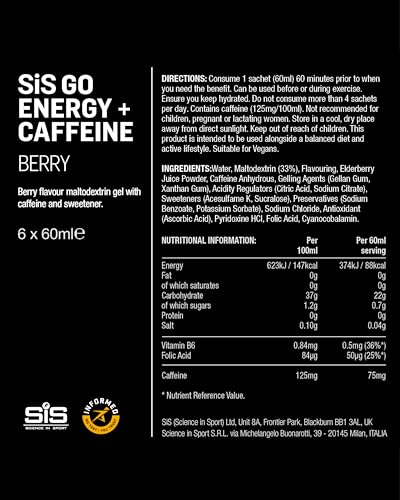 - توفر تقنية الجل الحائزة على جوائز طاقة سريعة مع تعزيز الكافيين الذي يسهل تناوله.