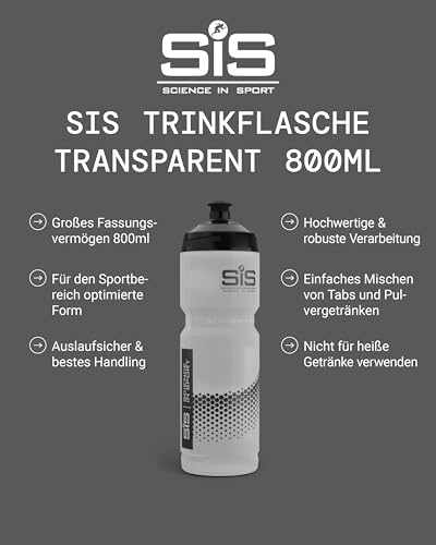 Science in Sport - زجاجة مياه رياضية شفافة اس اي اس من ساينس ان سبورت، زجاجة مياه بلاستيكية، شعار أسود، لون شفاف، 800 مل