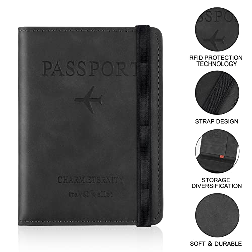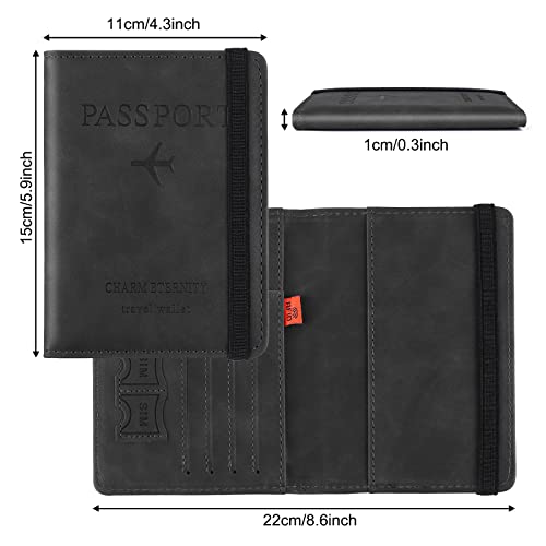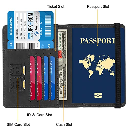 Sciphylia - حامل جواز السفر من سيفيليا، غطاء جواز السفر مع حجب تقنية تحديد الهوية بموجات الراديو من جلد البولي يوريثين، حامل وثائق السفر، ملحقات مفيدة مع متعدد الوظائف، متين ومريح، اسود داكن