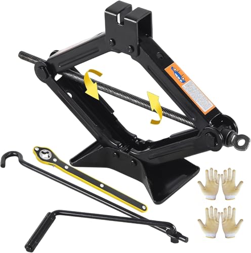 IS MUHE - رافعة مقصية للسيارة، مجموعة رافعة إطارات قوية بقدرة 2.5 طن لسيارات الدفع الرباعي والعادية، رافعة مقصية فولاذية قابلة للطي ومحمولة مزودة بمقبض كرنك