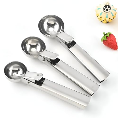 Generic - مغرفة ايس كريم من الستانلس ستيل عالي الجودة تستخدم للفاكهة المجمدة، حجم كبير، مقاومة للصدأ، أنيقة فضية انيقة لتقديم الطعام والاستخدام المنزلي (3 قطع)