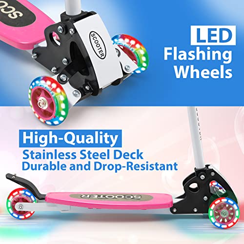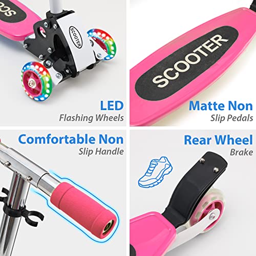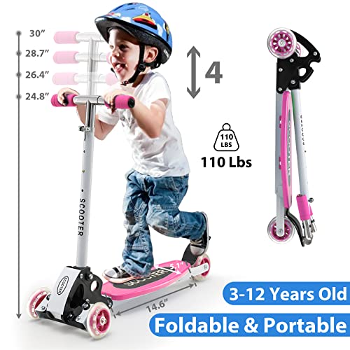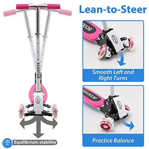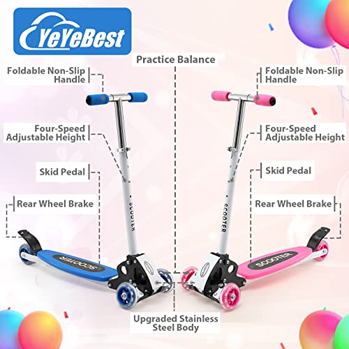 YeYeBest - سكوتر بثلاث عجلات للأطفال والصغار مزود بأربعة مستويات ارتفاع قابلة للتعديل ومنصة مقاومة للانزلاق وعجلات مضيئة متوهجة للبنات والأولاد لتعلم التحكم والتوجيه من عمر 3 إلى 12 سنة