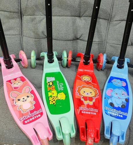 Generic - سكوتر مطاطي مضيء بأرجل معدن بارتفاع 75 سم مع 4 مستويات ارتفاع، مقاس 5 سنوات