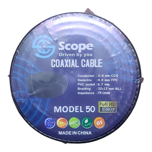 Generic - Scope كابل محوري موديل 50، 75 أوم، 0.8 مم CCS، 4.8 مم FPE، 6.7 مم PVC، Full HD 1080P، أسود، 50 ياردة عالى الجودة مقاوم للحرارة والرطوبة للوصول لانقى صورة مرئية