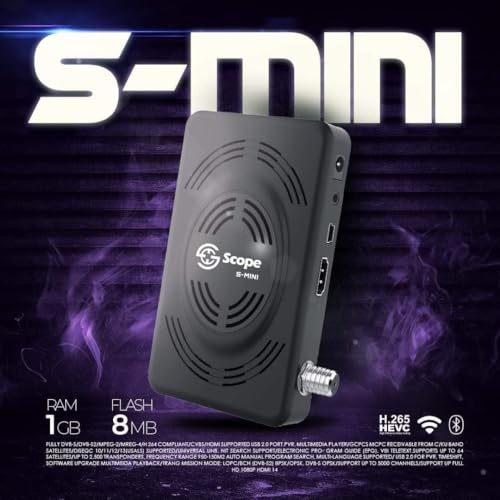 Generic - ريسيفر اس ميني من سكوب - مستقبل ايه في - 8000 قناة - اتش دي ام اي وايه في - واي فاي وبلوتوث - 2.0 قناة