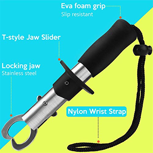 Scotank - كماشة صيد من سكوتانك اداة التقاط الاسماك الستانلس ستيل ومقبض ايفا فوم وحزام معصم اكسسوارات قوارب الكاياك ومعدات النجاة والصيد أسود