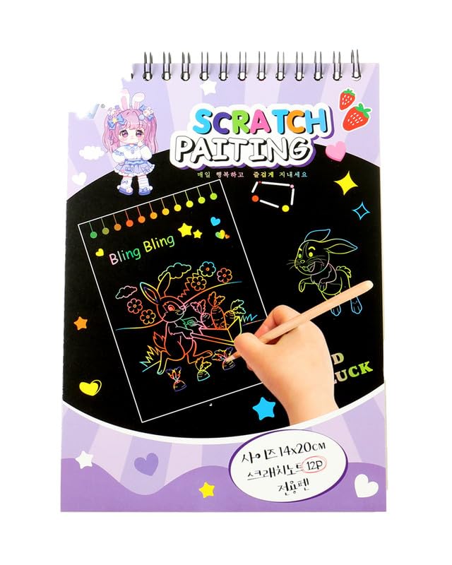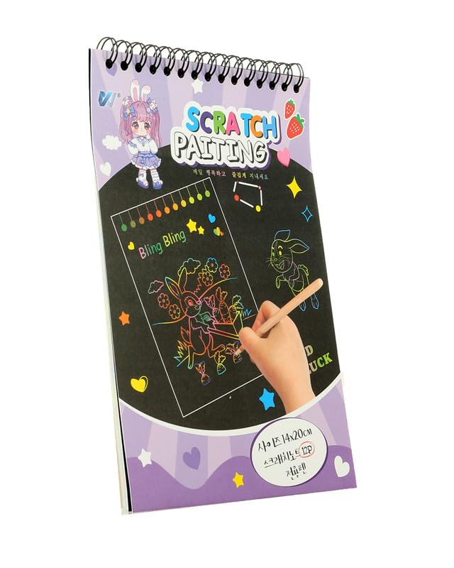 Generic - كشكول سكراتش سلك للرسم 20 × 13 سم مع قلم خشبي للأطفال - متعدد الألوان - 1133002-6