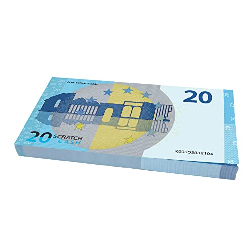 Scratch Lover - نقود نقدية 100 × 20 يورو للعب (حجم مخفض بنسبة 75% مقارنة بالعملات الحقيقية)، ورقة