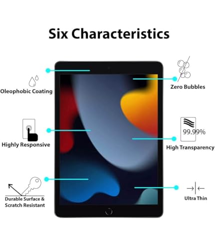 - خالية من أي فقاعات ولا تترك آثارًا. يقلل الطلاء المقاوم للزيوت من البقع وبصمات الأصابع. يمكنك تنظيف شاشة التابلت الخاص بك بمسحة بسيطة.