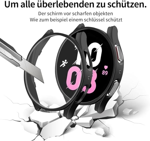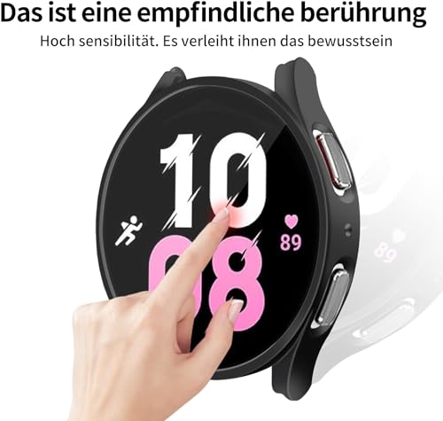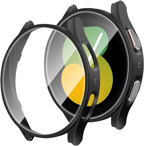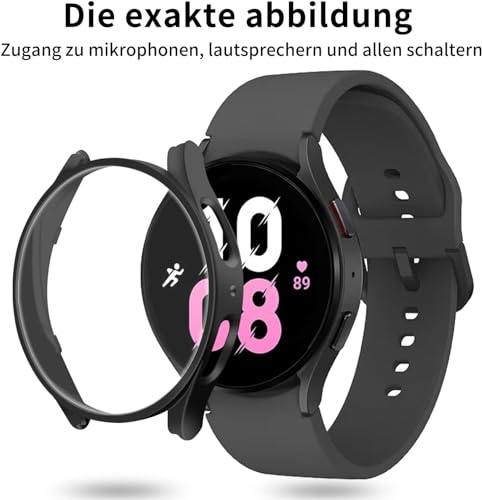 ELMO3EZZ - شاشة حماية من الموعز متوافقة مع ساعة سامسونج جالاكسي 4/5 44 ملم، إطار ساعة 4/5، غطاء رفيع صلب فاخر من البولي كربونات (أسود)