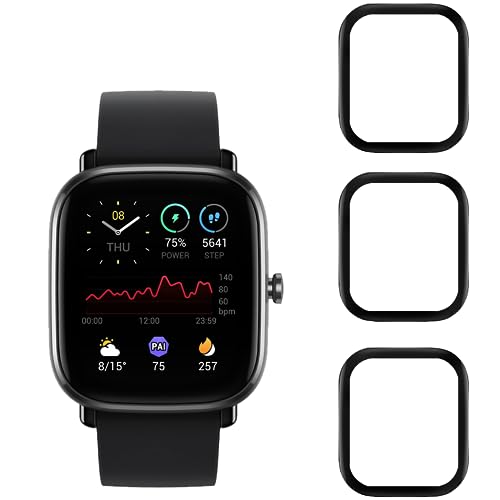 Vsjnk - واقي شاشة لساعة امازفيت جي تي اس 2 ميني، 3 قطع في اس جيه ان كيه HD من الياف الكربون مضادة للخدش عالية الدقة وخالية من الفقاعات، متوافقة مع امازفيت جي تي اس 2 ميني، شفاف