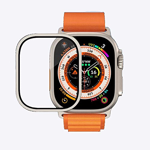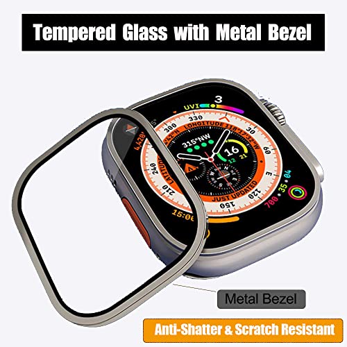 SOLOLUP - شاشة حماية لساعة ابل الترا 49 ملم غشاء من الزجاج المقوى مع اطار معدني اي ووتش خالية الفقاعات ومقاومة للخدش ملحقات ساعة
