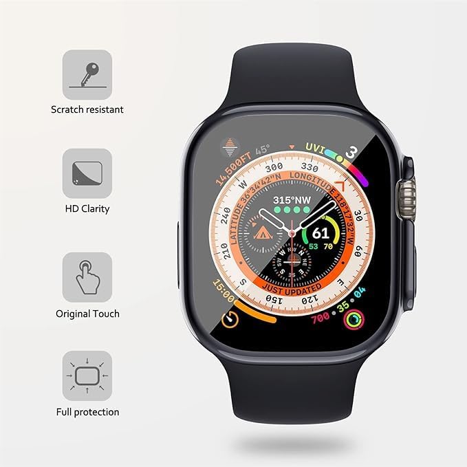 ELMO3EZZ - شاشة حماية لهيكل ساعة أبل ووتش ألترا 49 ملم من الموعز، رفيعة للغاية وعالية الدقة HD من بولي يوريثين مقاوم للحرارة، جراب حماية شامل، إكسسوارات ممتصة للصدمات لهيكل ساعة آي ووتش، أزرق