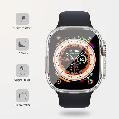 ELMO3EZZ - شاشة حماية لهيكل ساعة ابل ووتش الترا 49 ملم رفيعة للغاية وعالية الدقة HD من بولي يوريثين مقاوم للحرارة جراب شامل لابل إكسسوارات ممتصة للصدمات اي الموعز شفاف
