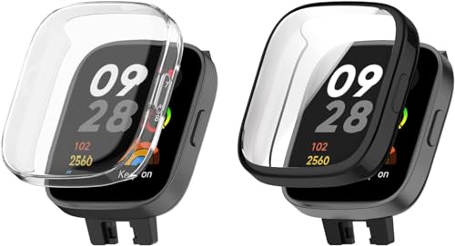 Generic - شاشة حماية لساعة ريدمي 3 اكتيف/ ريدمي ووتش 3 لايت، إطار ممتص للصدمات من البولي يوريثين الحراري، غطاء حماية كامل الحواف (أسود وشفاف)، لشاومي ريدمي