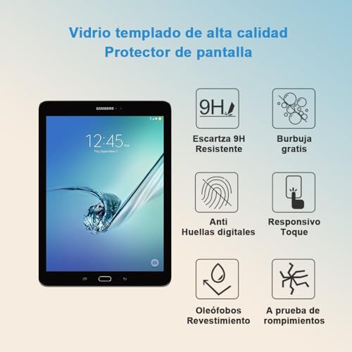 HYGMOCC - شاشة حماية لتابلت سامسونج جالكسي تاب اس 2 9.7 بوصة من الزجاج المقوى (SM-T810 T811 T813 T815 T819) بدرجة صلابة 9، مضادة للخدش، ومناسبة للجراب، وخالية من الفقاعات (قطعة واحدة)