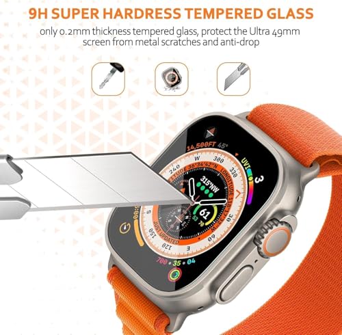 ELMO3EZZ - شاشة حماية لساعة الترا T800 49 ملم من الزجاج المقوى، مقاومة للكسر [مضادة للزيت] [خالية من الفقاعات] [مضادة للخدش] درجة صلابة 9