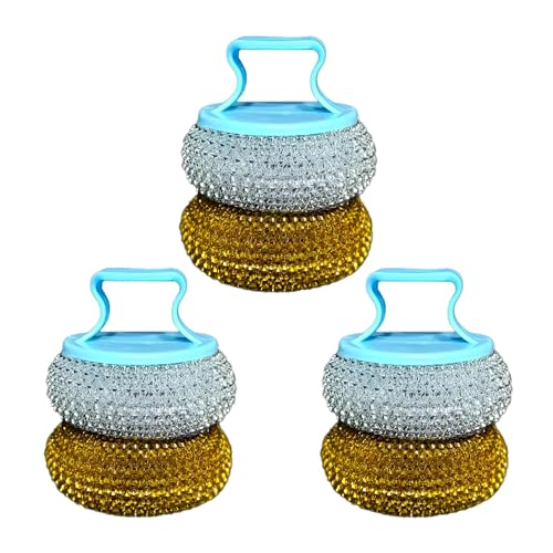 Generic - مجموعة أدوات تنظيف - مجموعة إسفنجات غسيل الأطباق من الفولاذ المقاوم للصدأ بيد مريحة لتنظيف البقع الصعبة والشحوم على الحلة وحلة الطهي وأسطح المطبخ بسهولة، تدوم طويلا وسهلة الشطف