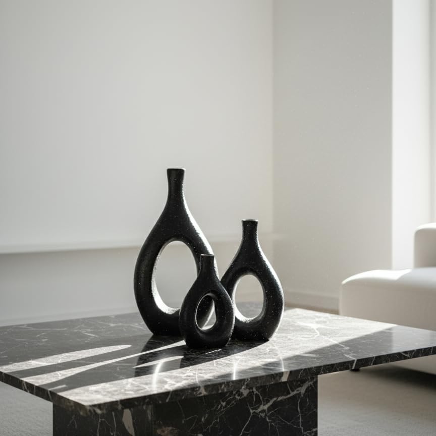 Generic - مجموعة مزهريات منحوتة، اسود، متوفرة بمقاس 20 سم و30 سم و40 سم، مجموعة مزهريات اكليبس النحت تجمع بين الفن الحديث والملمس الخام، مما يخلق انطباعًا جريئًا لأي ديكور داخلي