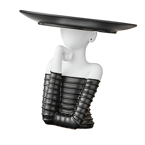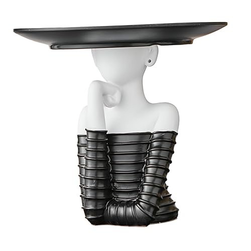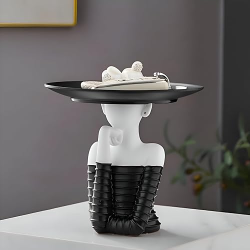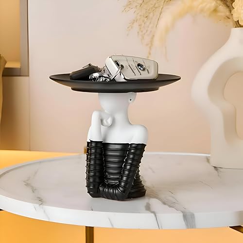 Generic - منحوتة - تمثال امرأة مزخرف عصري مع صينية مفاتيح، قطعة مركزية فنية تمزج بين الوظائف والرقي، مثالي للمدخل أو غرفة المعيشة بأسلوب أنيق باللونين الأسود والأبيض
