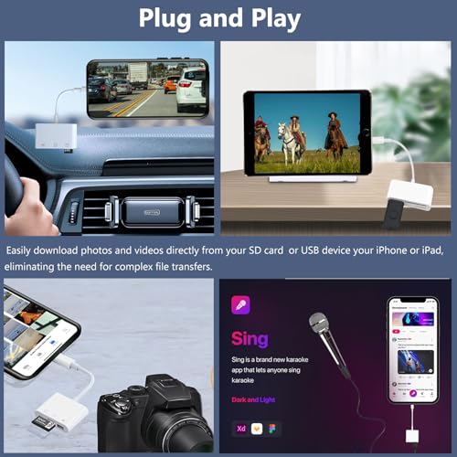 - سهل الاستخدام والتوصيل والتشغيل: قل وداعًا لتطبيقات الاتصال التابعة لجهات خارجية والحاجة إلى اتصال بالإنترنت. ما عليك سوى توصيل قارئ بطاقة SD أو أجهزة USB 3.0 بجهازك وانتظر لمدة 3-5 ثوانٍ فقط. الأمر في غاية البساطة. الآن يمكنك مشاركة لحظاتك العزيزة على الفور مع العائلة والأصدقاء في الوقت الفعلي باستخدام محول قارئ بطاقة SD المريح لموبايل آيفون.