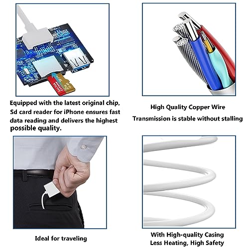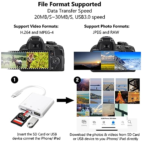 - نقل فائق السرعة للبيانات: مع سرعات نقل فائقة تصل إلى 30 ميجابايت/ثانية على آيفون واي باد، يضمن قارئ بطاقة SD نقل سريع وفعال لصور الكاميرا ومقاطع الفيديو. استمتع براحة نقل ذكرياتك الثمينة إلى جهاز آيفون أو اي باد الخاص بك في غضون ثوانٍ، مما يوفر لك الوقت الثمين.