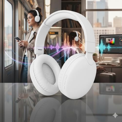 Generic - هيدفون لاسلكية بتشغيل حتى 8 ساعات – منفذ بطاقة TF وصوت واضح بتردد 20Hz-18KHz – بطارية 200mAh وشحن سريع خلال ساعتين - موديل SD1101 (ابيض)