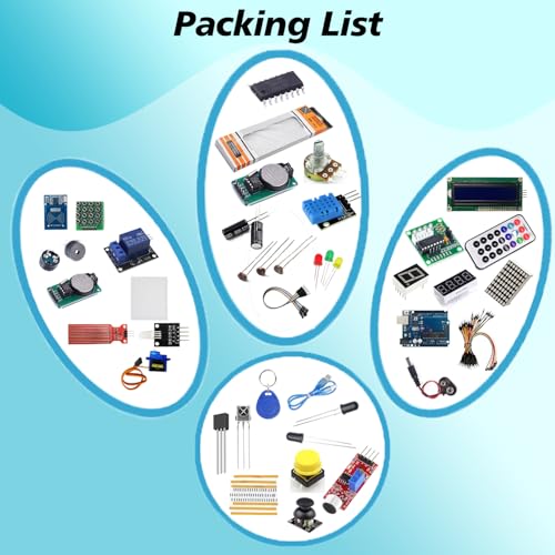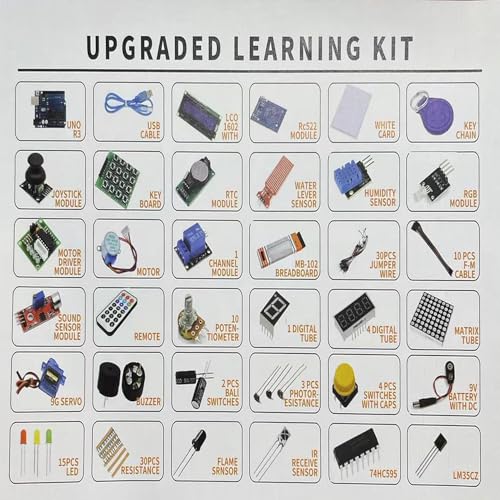 - تجربة تعليمية شاملة: تحتوي المجموعة على 36 مكونًا معبأة في صندوق مقسم للتعلم المنظم. مثالية للهواة والمبتدئين على حد سواء، حيث توفر مجموعة كاملة لاستكشاف اردوينو اونو R3.