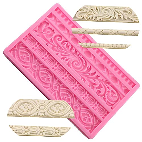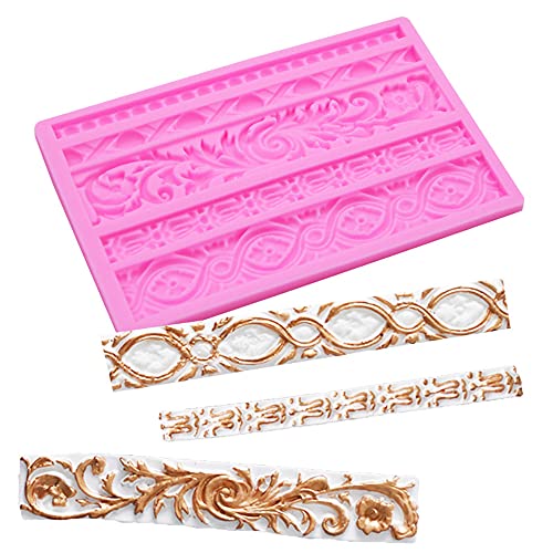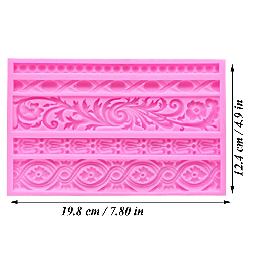 YANJINGHE - قوالب سيليكون لحدود الكيك من اس دي اف اس ايه، حصيرة دانتيل على شكل زهرة لتخفيف الحدود، قوالب سيليكون لتزيين حواف الكيك والشوكولاتة والحلويات (بينك)