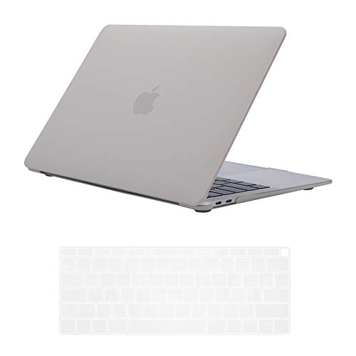 Se7enline - سيفين لاين حافظة حماية صلبة متوافقة مع ماك بوك اير 13 انش وغطاء كيبورد 2018/2019/2020/2021 لجهاز ماك اير 13 انش بشاشة ريتينا تاتش اي دي اصدار A1932/M1 A2337/A2179، رمادي حجري، بولي كربونات