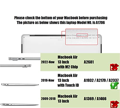 - غير متوافق مع ماك بوك اير 13 انش موديل A1369/A1466 الإصدار القديم 2010-2017. يرجى التحقق مرة أخرى من رقم طراز ماك بوك الخاص بك "A1xxx" في الجزء السفلي من اللاب توب لتحديد التوافق.