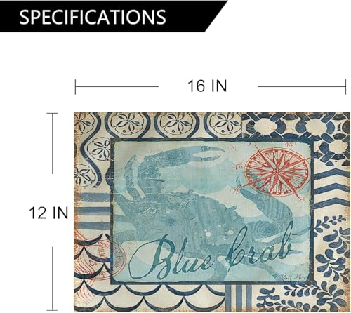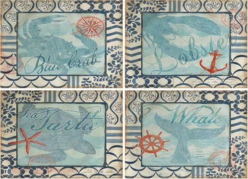 Generic - مفارش طاولة برسوم حيوانات بحرية وتصميم ساحلي لشاطئ البحر مع سلحفاة وحصان البحر، مقاومة للحرارة وقابلة للغسل ومقاومة للانزلاق لغرفة الطعام والمطبخ وديكور الطاولة، أزرق، 30.5 × 40.6 سم، عبوة من 4 قطع