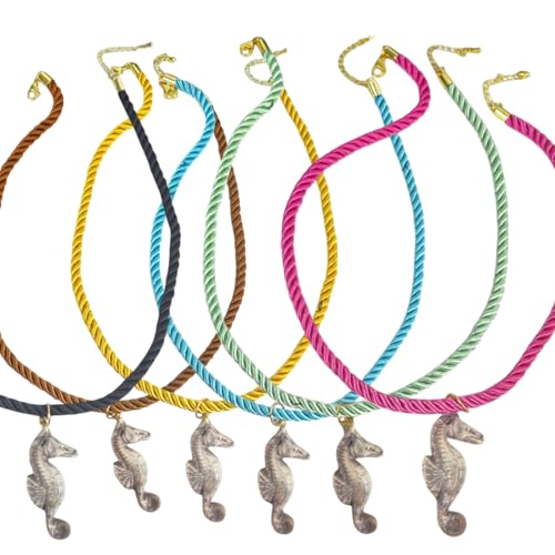 Generic - قلادة حصان البحر مع حبل ملون، 1 قطع، تعليقة فضية، متعدد الألوان