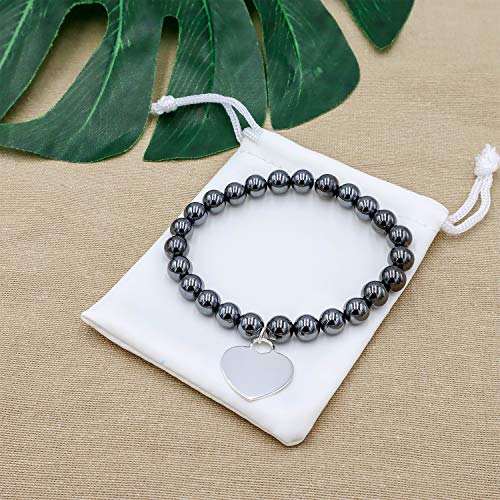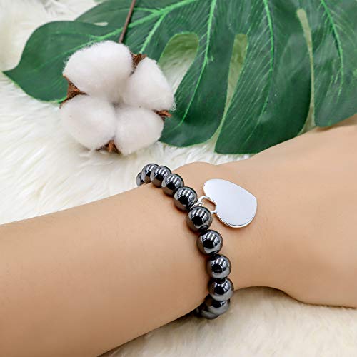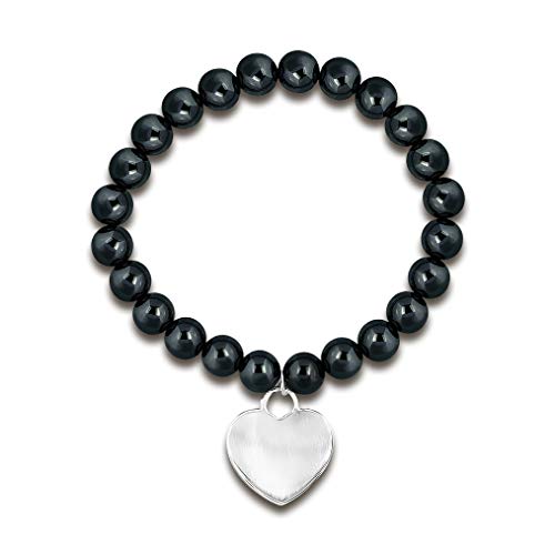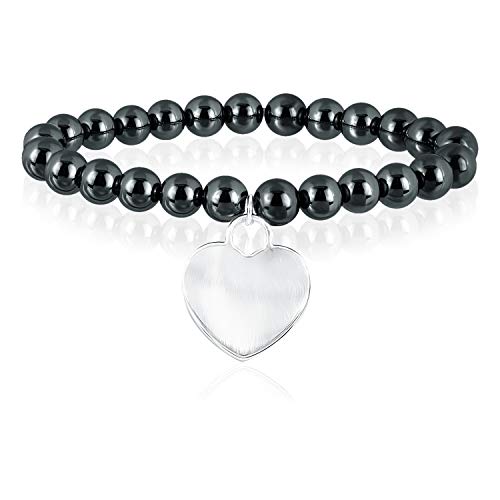 generic - سوار قابل للتمدد من الاحجار شبه الكريمة شبه الكريمة مقاس 8 ملم مع تعليقة على شكل قلب فضي للنساء والبنات مقاس 7.5 انش من سي اوف ايس