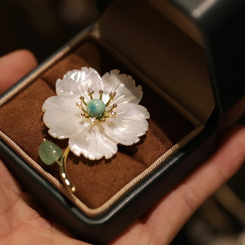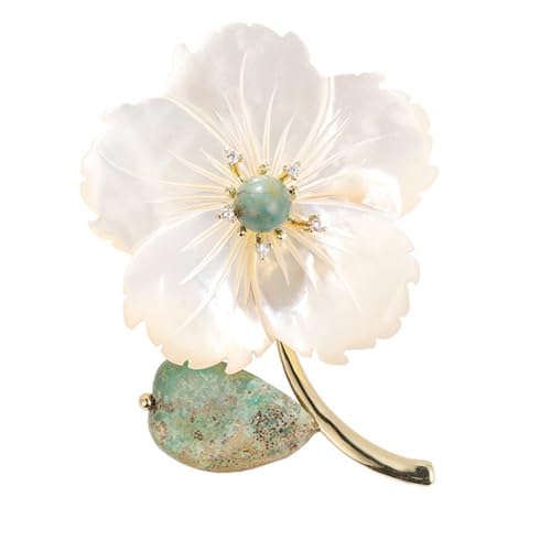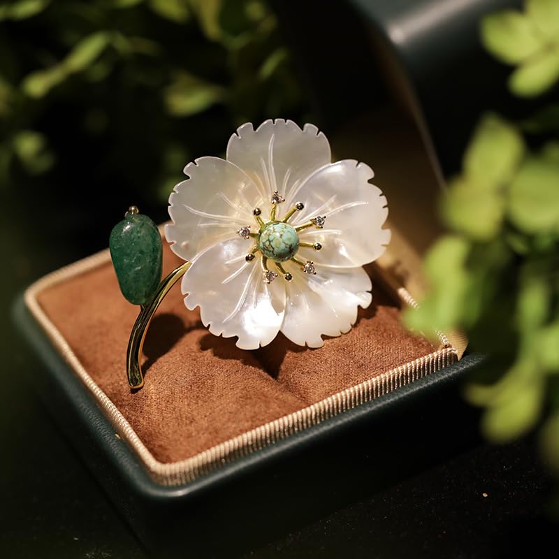 RAXINJS - بروش بحجر امبراطوري كلاسيكي على شكل صدفة البحر وزهرة - ذهبي واخضر
