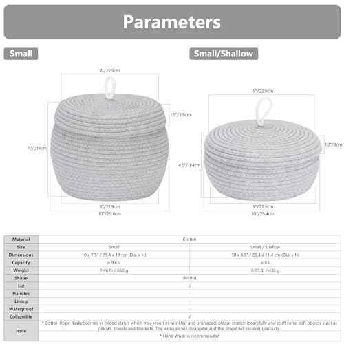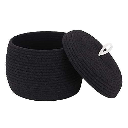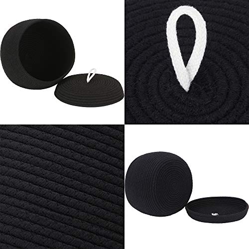 Sea Team - سلة تخزين دائرية من الحبال القطنية مع غطاء من سي تيم، سلة تخزين منسوجة ديكورية، منظم للوجبات الخفيفة والفوط والنباتات، مقاس 25.4 سم × 19 سم، مقاس صغير، لون أسود