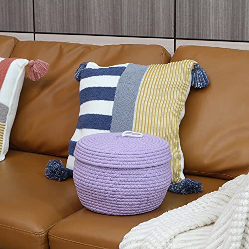 Sea Team - سلة تخزين دائرية من الحبال القطنية مع غطاء، سلة تخزين منسوجة مزخرفة، وعاء، علبة، منظم، حاوية للوجبات الخفيفة والمناشف والنباتات، مقاس 25.4 × 19.05 سم من سي تيم (مقاس سمول، أرجواني)
