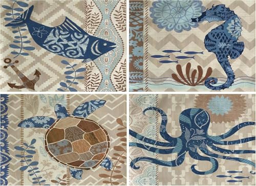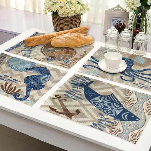 Generic - مفارش طاولة بتصميم سلحفاة البحر بتصميم كلاسيكي للشاطئ والمحيط مقاومة للماء والحرارة وقابلة للغسل وغير قابلة للانزلاق، 4 قطع لغرفة العشاء والمطبخ وديكور الطاولة، مقاس 30.5× 40.6 سم، لون بني