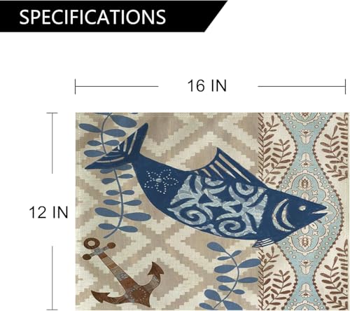 - العبوة: تأتي مفارش الأطباق البحرية بطابع المحيط مع 4 قطع. يبلغ مقاس كل مفرش 12 × 16 انش. يتم قطع جميع سجادات الأماكن يدويًا وربما يكون خطأ القياس بمقدار 1-2 انش نطاقًا معقولًا بسبب طرق القياس المختلفة.