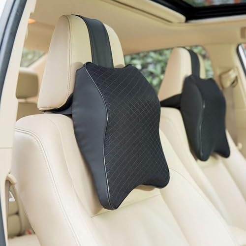 SEAHOME - وسادة مسند الرأس لمقعد السيارة - وسادة مريحة للرقبة للسيارة متينة 100% من إسفنج ميموري لدعم الرقبة - وسائد مريحة لمقعد السيارة لتخفيف آلام الرقبة والظهر (قطعتان باللون الأسود)، من سي هوم