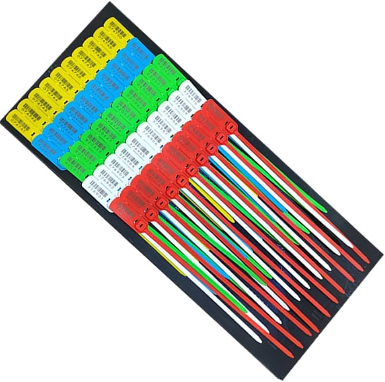 - ✅سدادات إرشادية بنقاط قفل مزدوجة لمزيد من السلامة، اربطة امان مرقمة شديدة التحمل، اربطة بلاستيكية مقاومة للعبث مع ربطة سلكية، ملصق امان لوجستيات نقل الامتعة